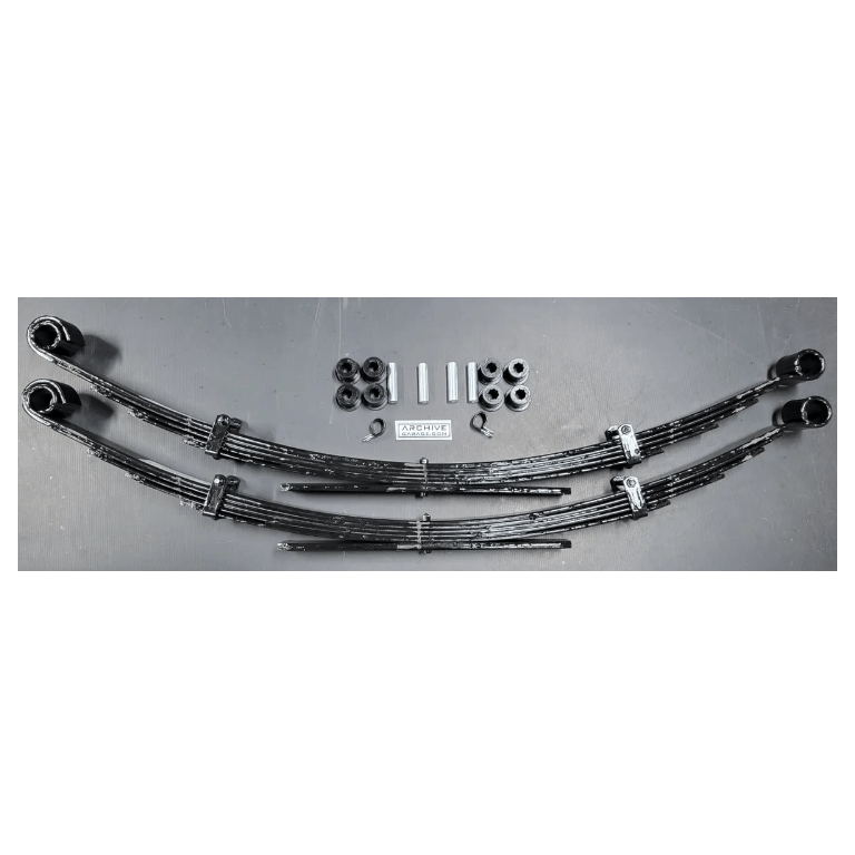 Archive Explorer Series Tacoma leaf packs are designed for severe duty off road travel. Made in USA with 5160 steel, tip insert pads, full military wrap yet won't scrape hanger, bolted spring clips, and high quality poly bushings included in price. Carefully designed to NOT have interference issues that are so common with aftermarket springs in the Tacoma market. Get your perfect spring rate by following our Archive Method Here.