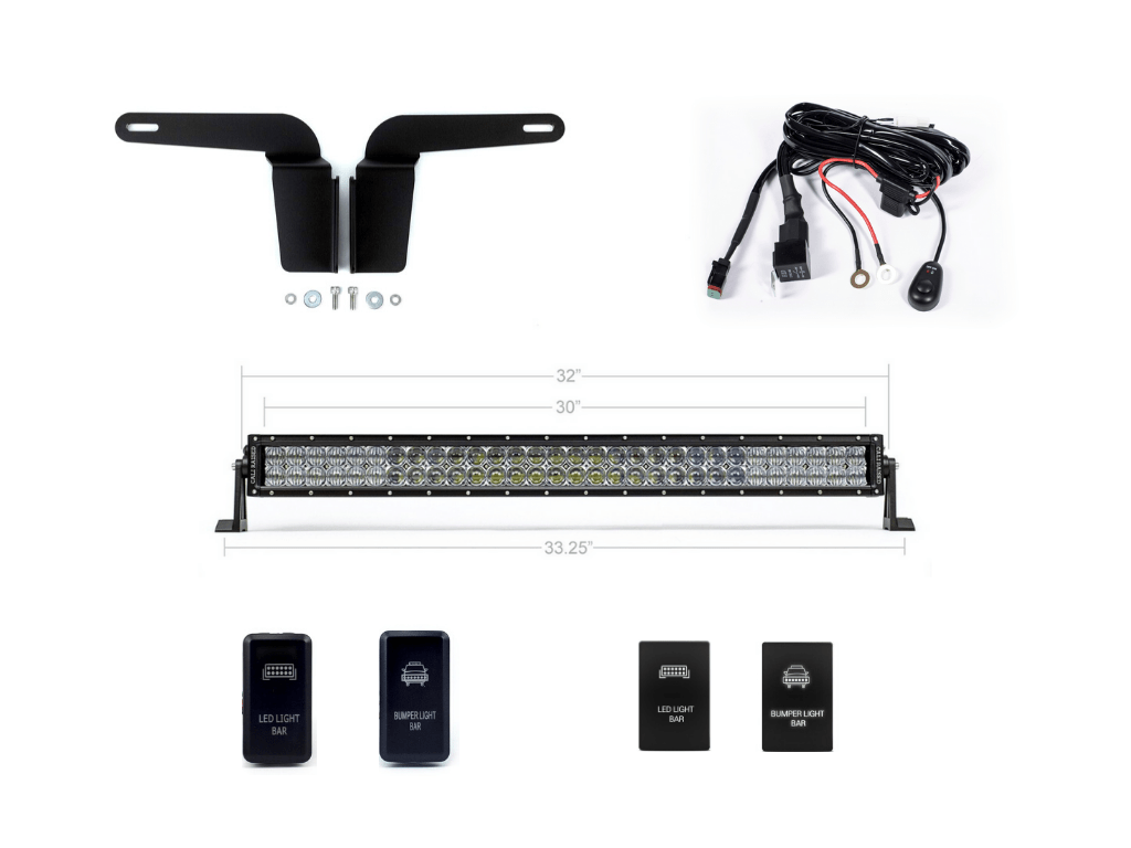 Ignite the night with the Cali Raised LED 32" LED Light Bar Lower Bumper Flush LED Light Bar Brackets/Combo. Our mounting system is CAD designed, CNC cut and bent to perfection providing a seamless fit. Our mounts are designed to be stealthy but strong keeping your LED light bar vibration free while still providing tons of light on the road and trail. Combine all these great features with our 2-year warranty on all vehicle mounting systems so you can drive into the darkness and ignite the night.